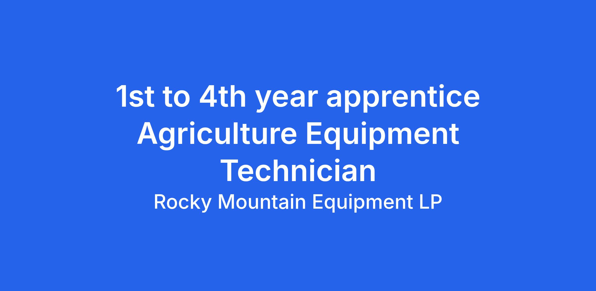 Rocky Mountain Equipment LP (Grimshaw AB): rme is currently offering signing bonuses for service technicians! JOB TITLE: Agriculture Equipment Technician (1st to 4th year apprentice) POSITION TYPE: Permanent β Full Time BRANCH: Grimshaw, ab reporting to: Service Sales Manager RME (Rocky Mountain Equipment) is a powerful network of agriculture, construction, rental,