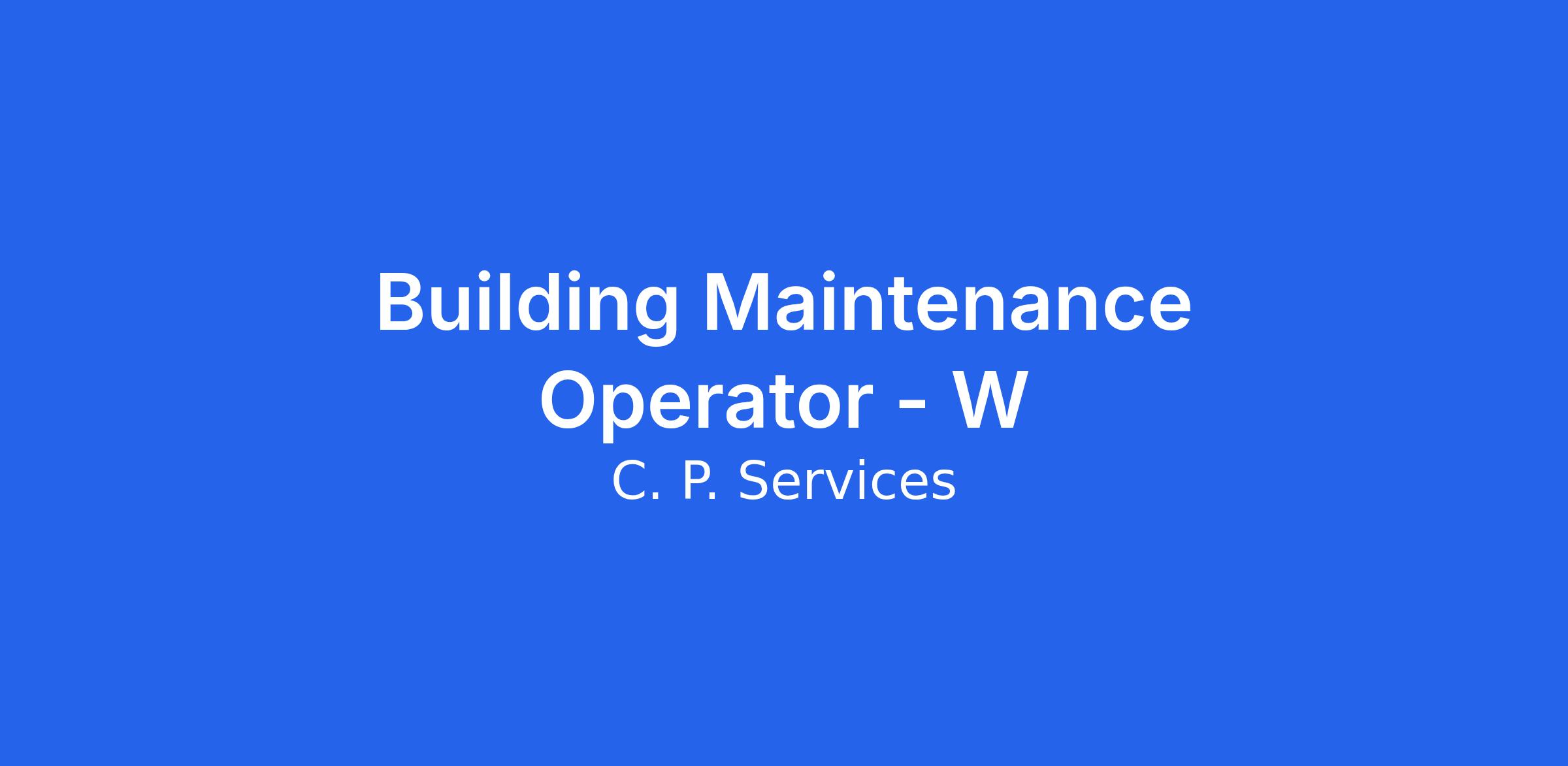 C. P. Services (Fort McMurray AB): Location β Fort McMurray Employment Type: Full Time Shift Schedule. 7/7 12 hour days Camp Accommodations. Camp Provided Travel: Flights provided. Hubs out of Edmonton and Calgary Preferred Experience . Minimum 5 yearsβ experiencein Building Maintenance. Experience in oil gas, SAGD, or industrial environments. Proficiency with SAP, Word, and Excel is considered a strong asset. Background in HVAC, sprinkler systems, building controls, or BMS systems. 5th or 4th Class Power Engineering...