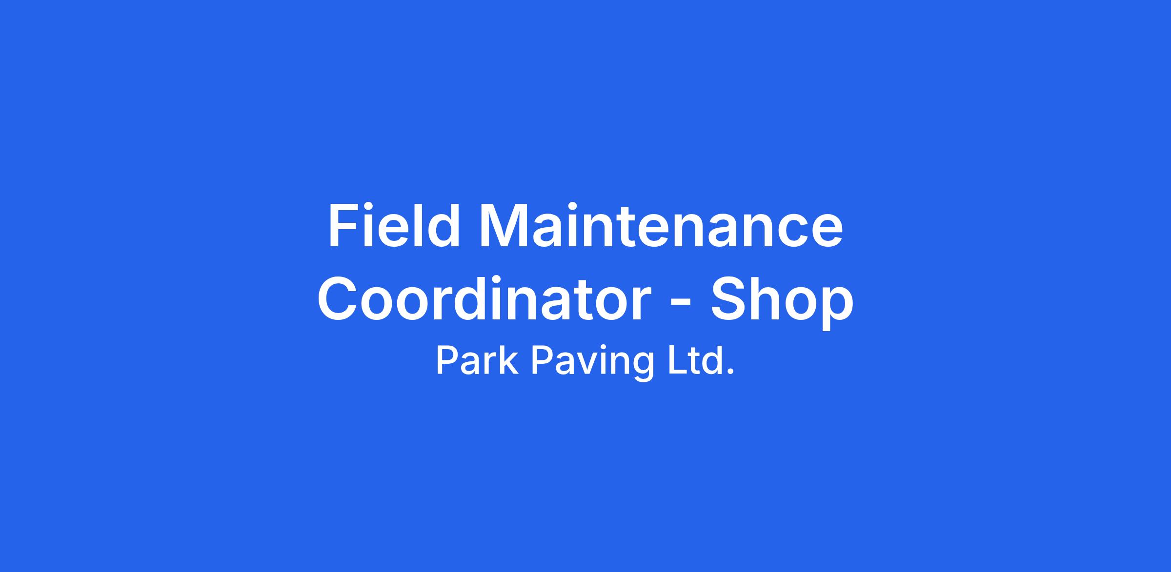 Temporary Field Maintenance Coordinator to join our team. We are currently seeking a Temporary Field Maintenance Coordinator to support daily