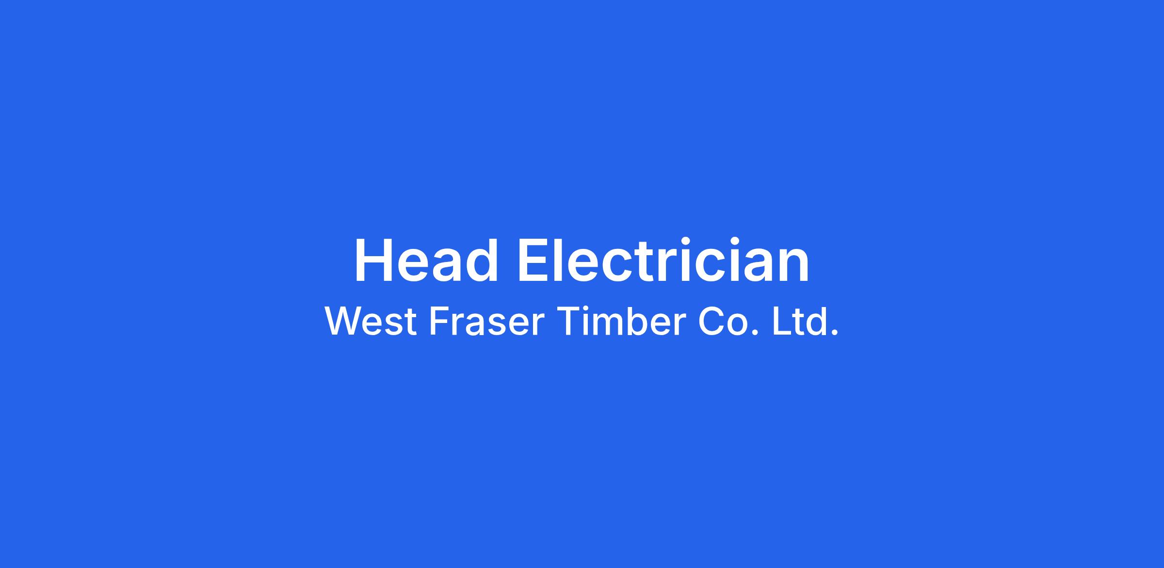 Electrician. Reporting to the Maintenance Superintendent, a Head Electrician will be instrumental in the