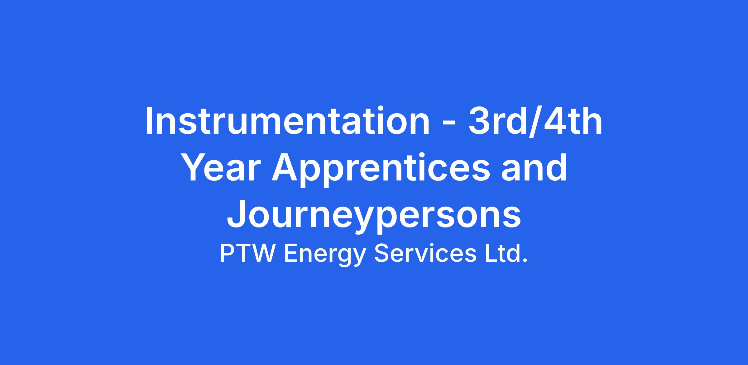 PTW Energy Services Ltd. (Valleyview AB): PTW is hiring local 3rd/4th Year Instrumentation Apprentices and Journeypersons to join our