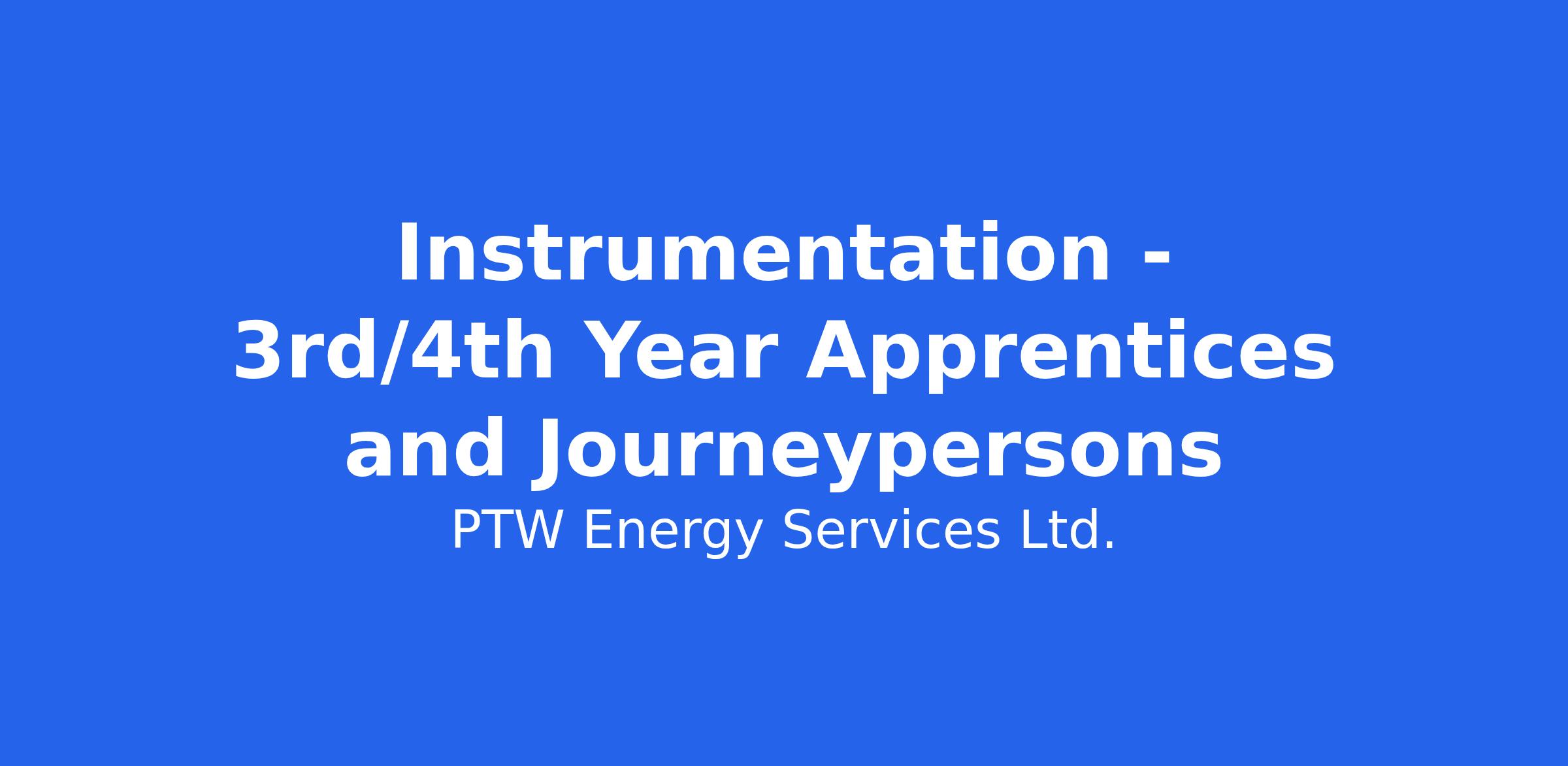 PTW Energy Services Ltd. (Peace River AB): PTW is hiring local 2nd/3rd/4th Year Instrumentation Apprentices to join our team in Peace