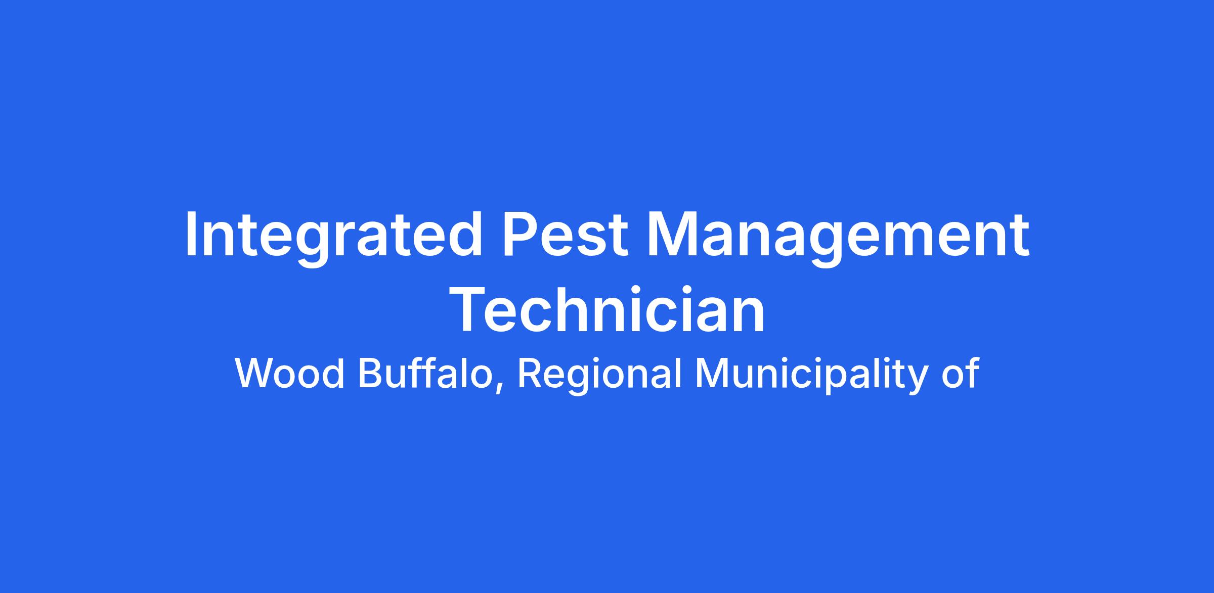 Wood Buffalo, Regional Municipality of (Fort McMurray AB): Under general supervision, the Integrated Pest Management (“IPM”) Technician is