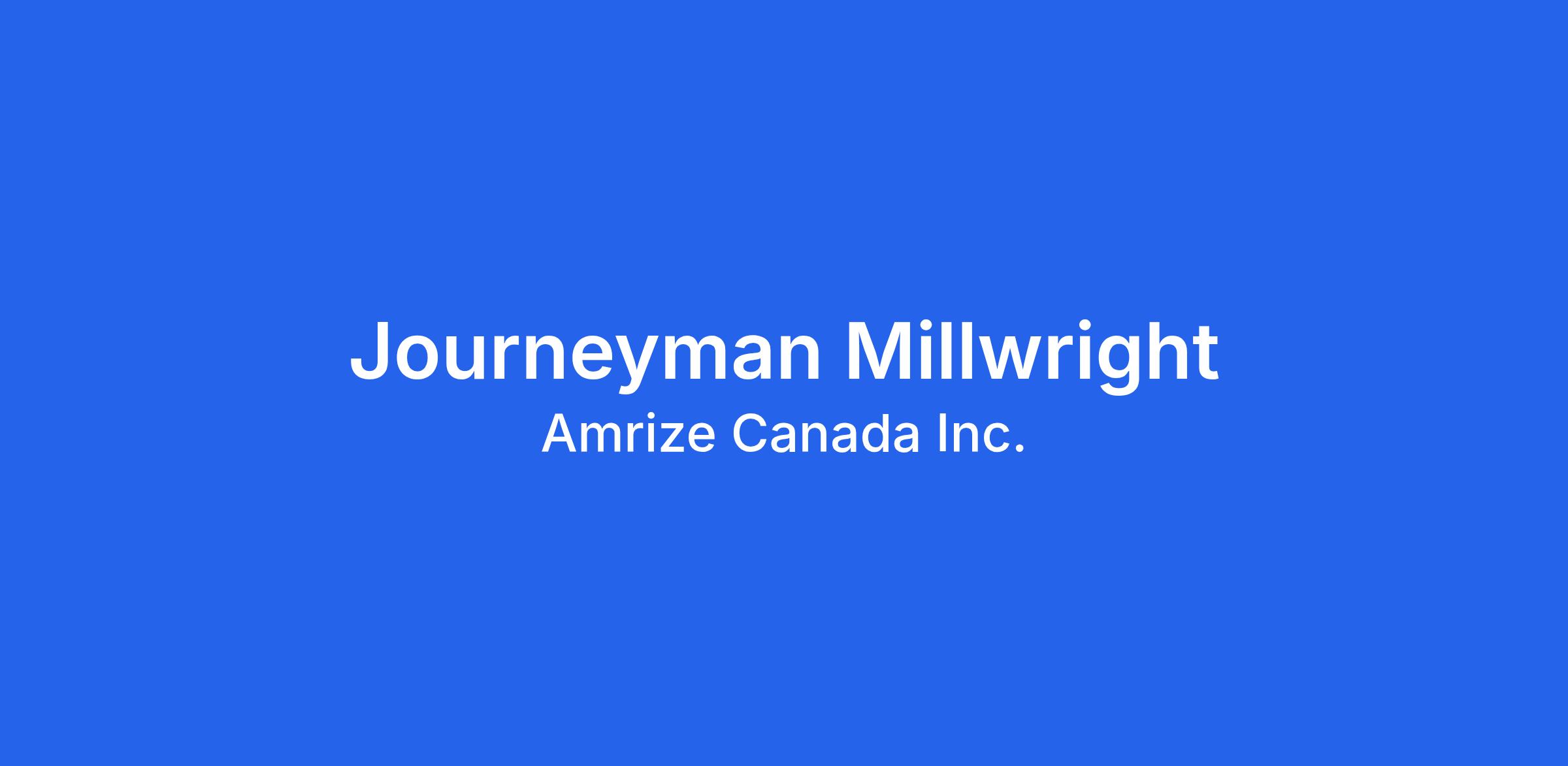 Amrize Canada Inc. (Exshaw AB): Amrize is looking for a Journeyman Millwright for our Exshaw AB Cement Plant. Millwrights are