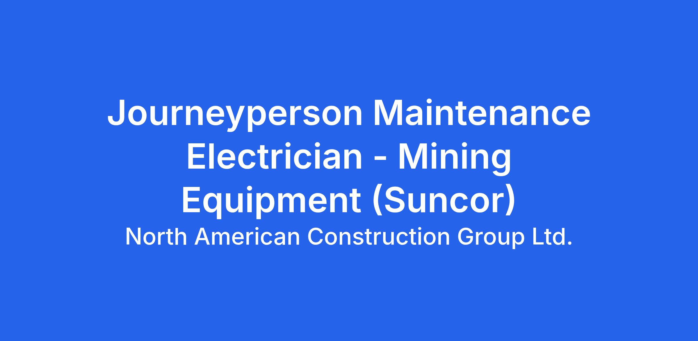 North American Construction Group Ltd. (Fort McMurray AB): Position Scope NACG is looking for a Journeyman (Journeyperson) Electrician to work on a remote mining site