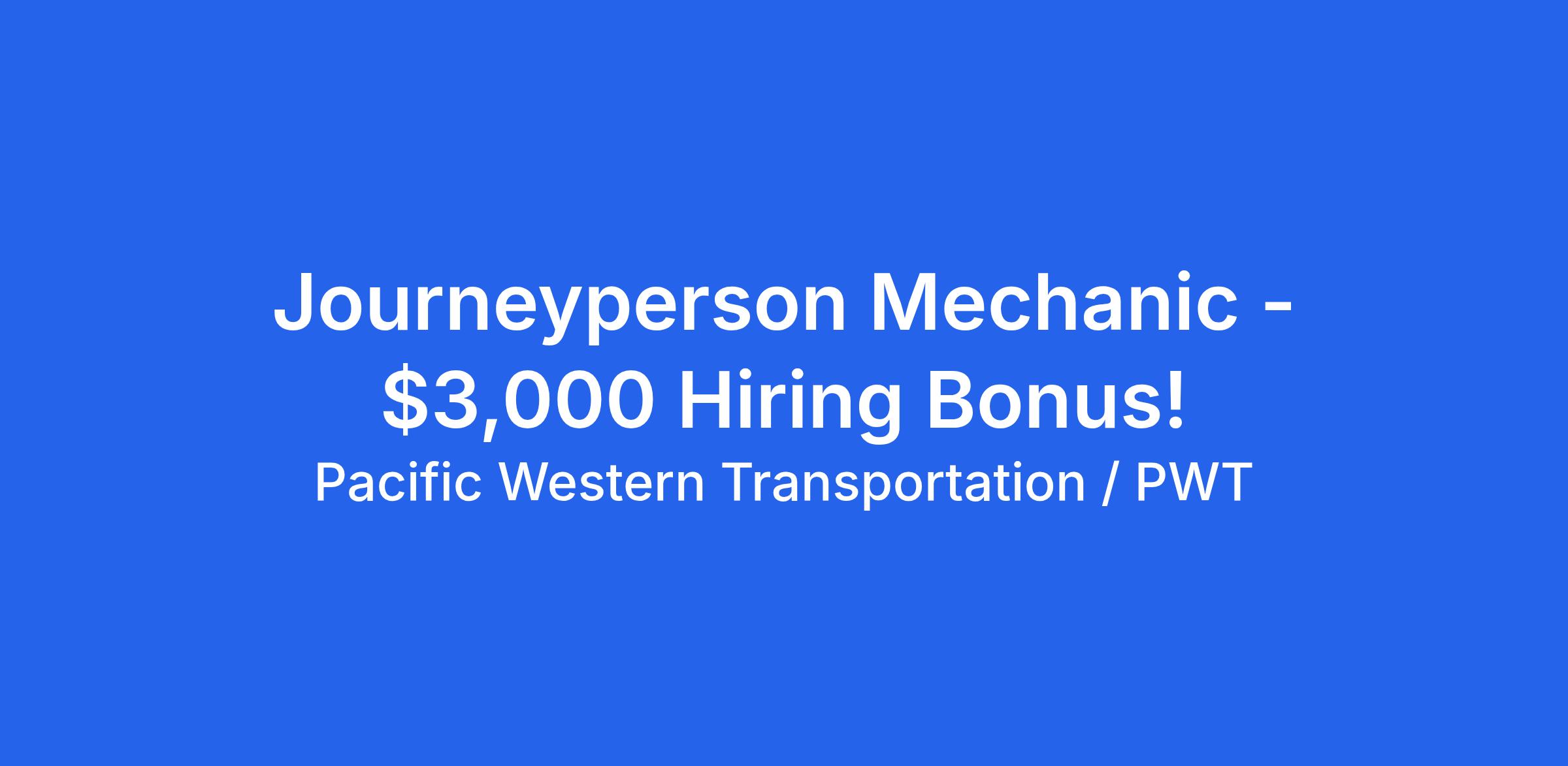 Pacific Western Transportation / PWT (Cold Lake AB): Journeyperson Mechanic. Automotive or Heavy Duty Do you enjoy a challenge? Are you looking for a Monday through Friday schedule that allows for