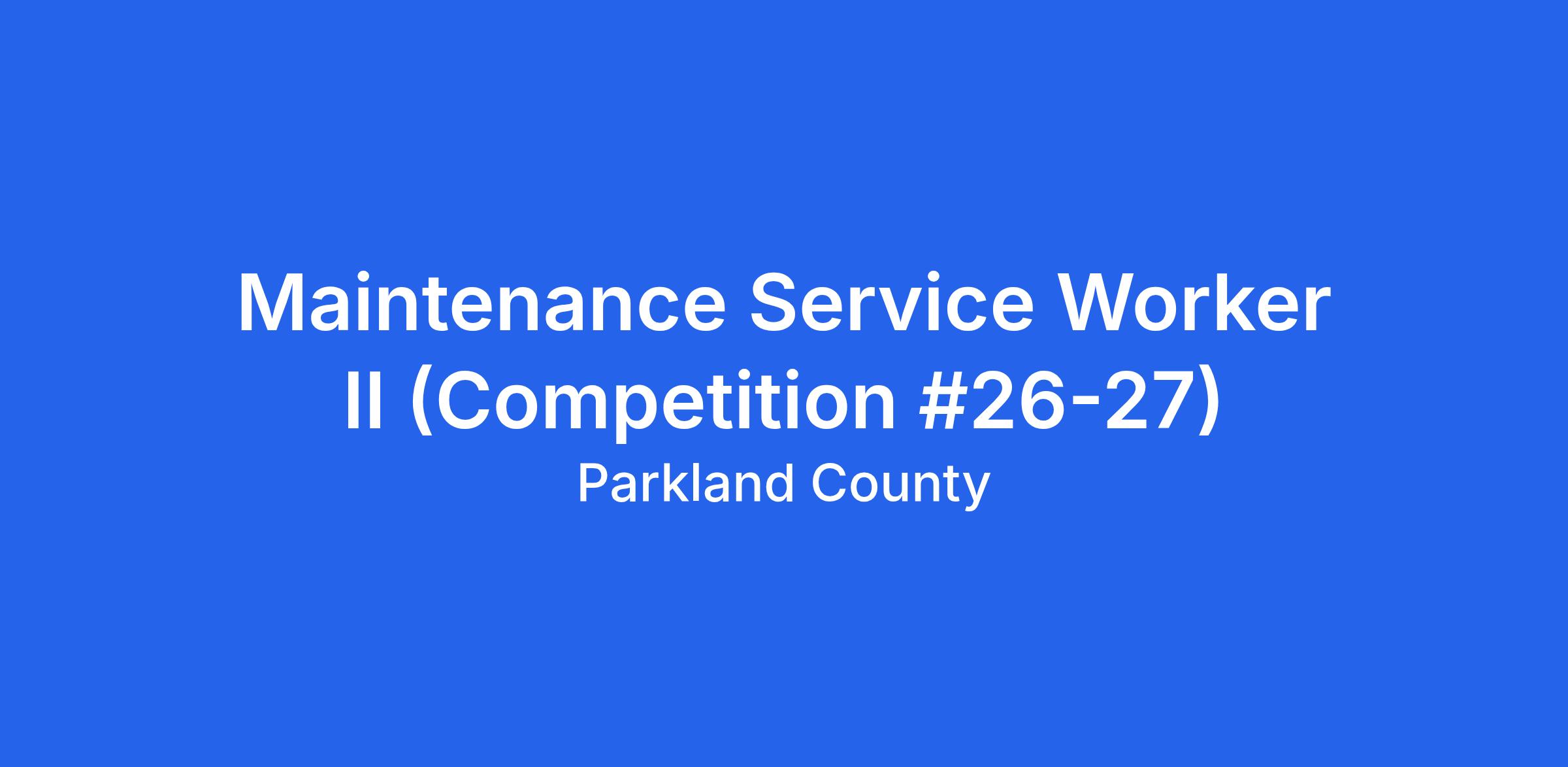 Parkland County (Parkland AB): Parkland County has a temporary, full-time Maintenance Service Worker II position