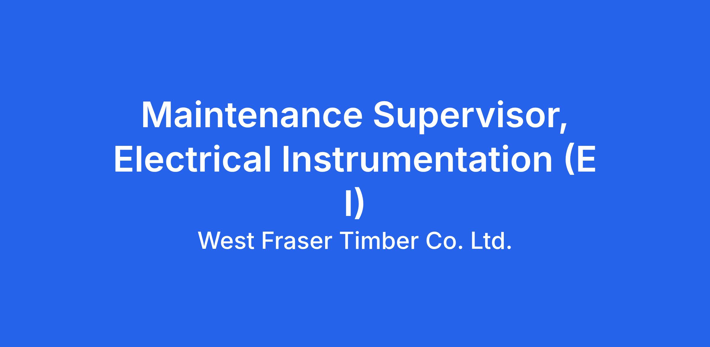 recruiting for a Maintenance Supervisor, Electrical Instrumentation (E I) . Reporting to the Maintenance Superintendent, this role provides technical direction and