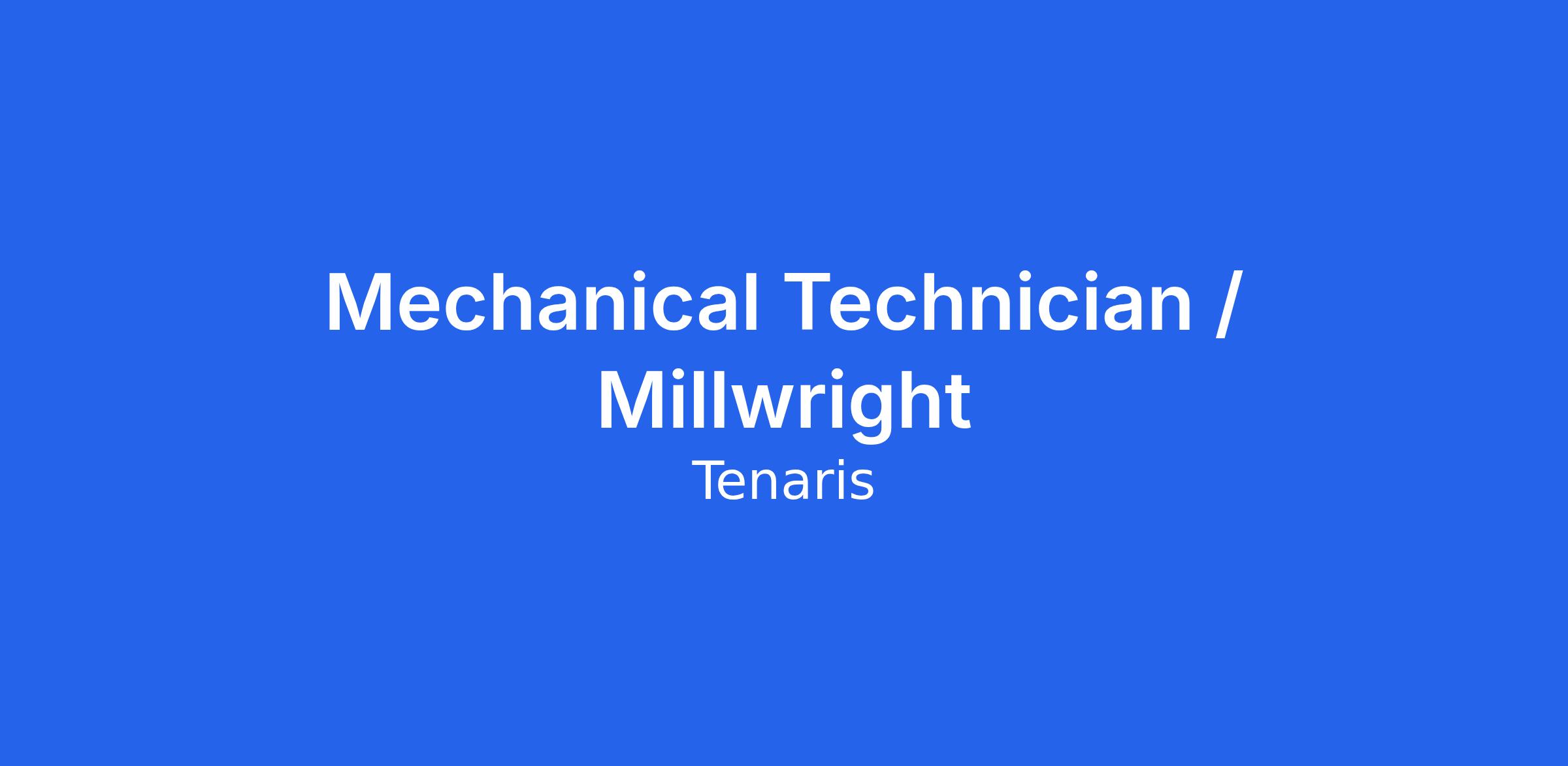 Tenaris (Nisku AB): Mechanical Technician / Millwright LOCATION: Nisku. Alberta. Canada DEPARTMENT: MAINTENANCE Role The role of Mechanical Technician within the Operation Department in Nisku, AB maintenance