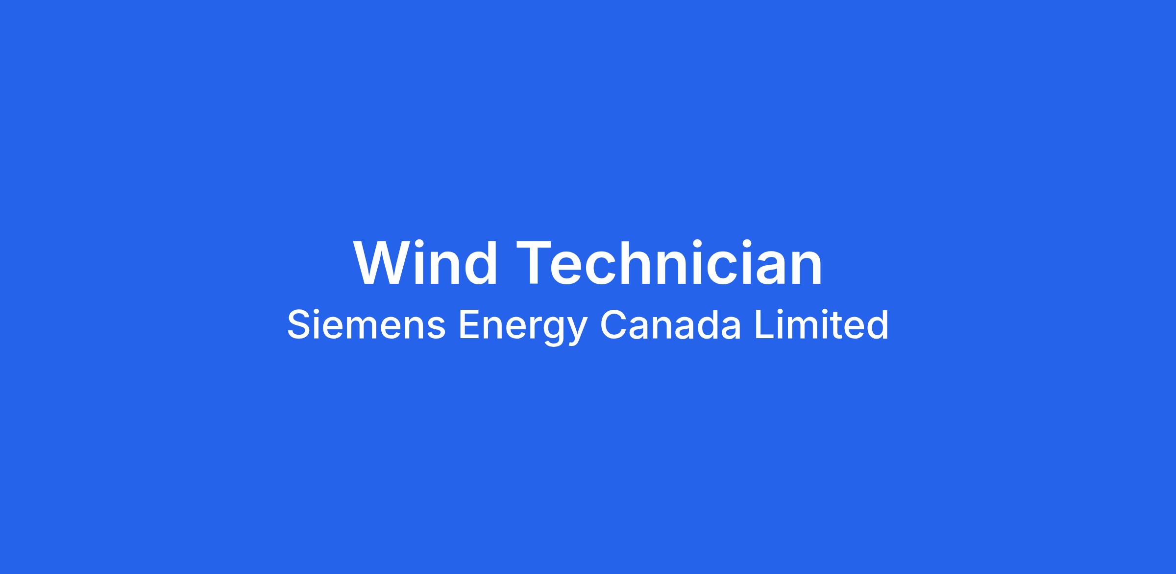 Siemens Energy is currently seeking highly talented and motivated candidates for a Wind Technician position.